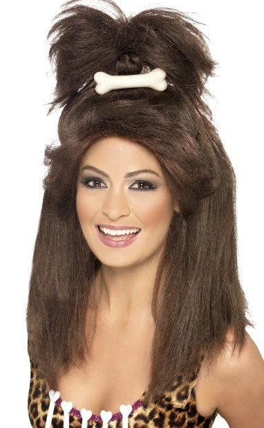 Crazy Cavewomen pruik bruin met bot