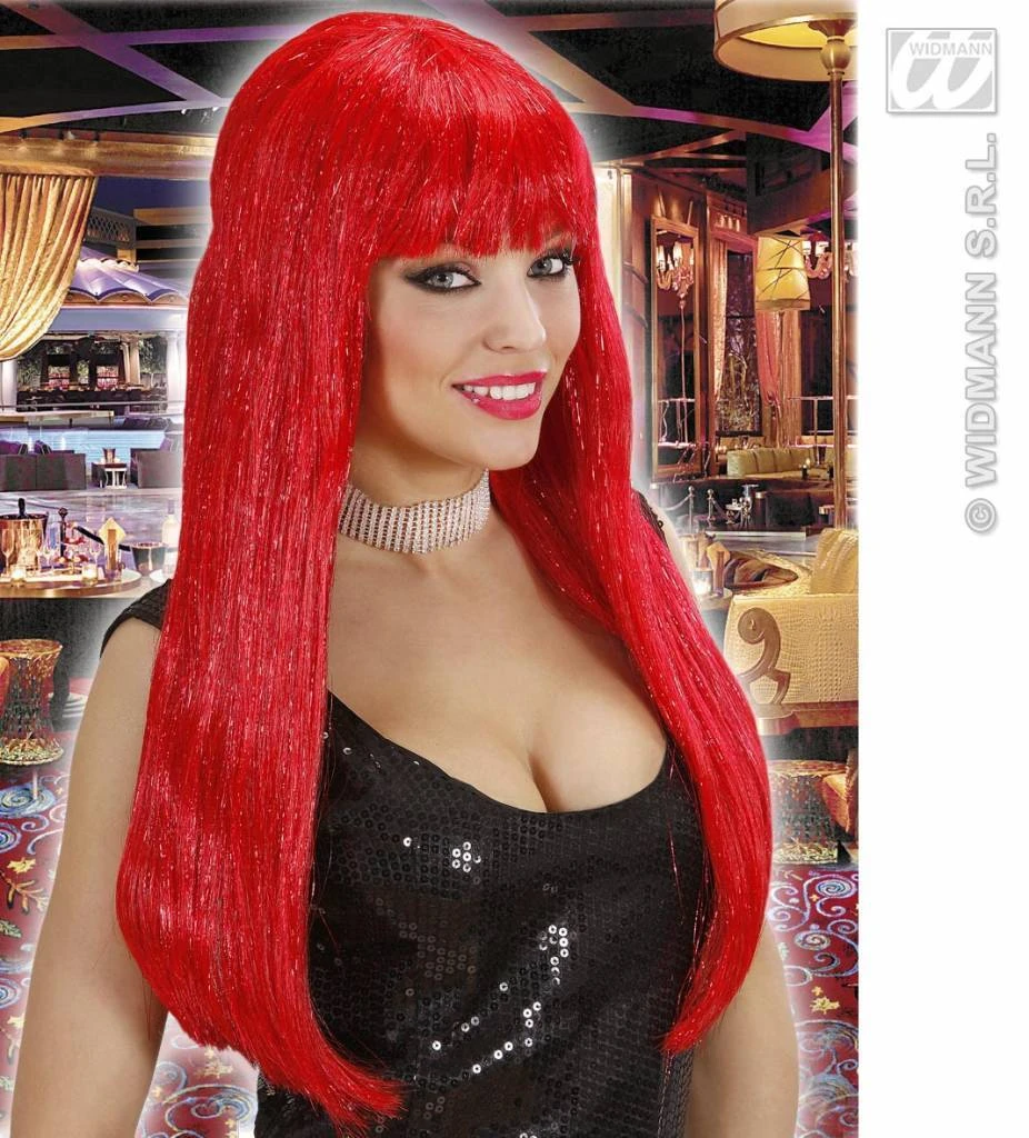 Glamour pruik glitzy rood