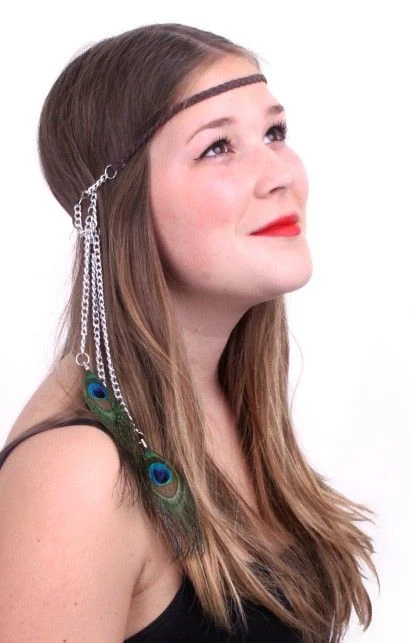 Hoofdbandje/ ketting Ibiza met pauwveren