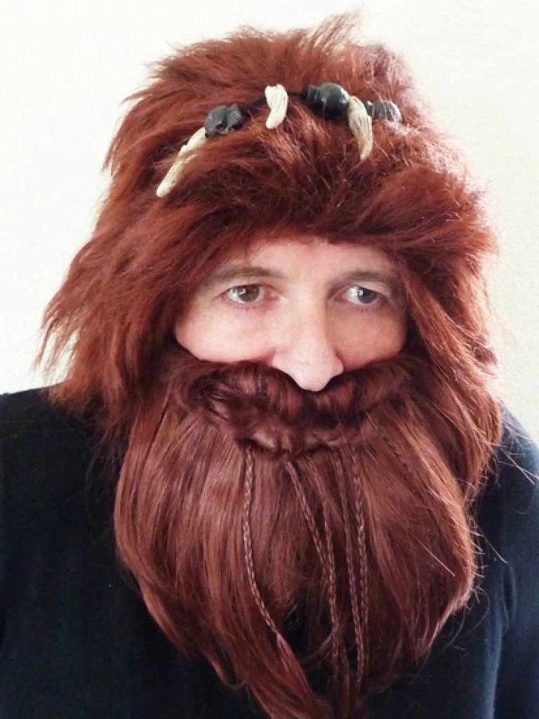 Het geheel bestaat uit een pruik en baardstel