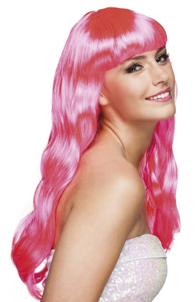 Pruik lang haar pony roze Chique